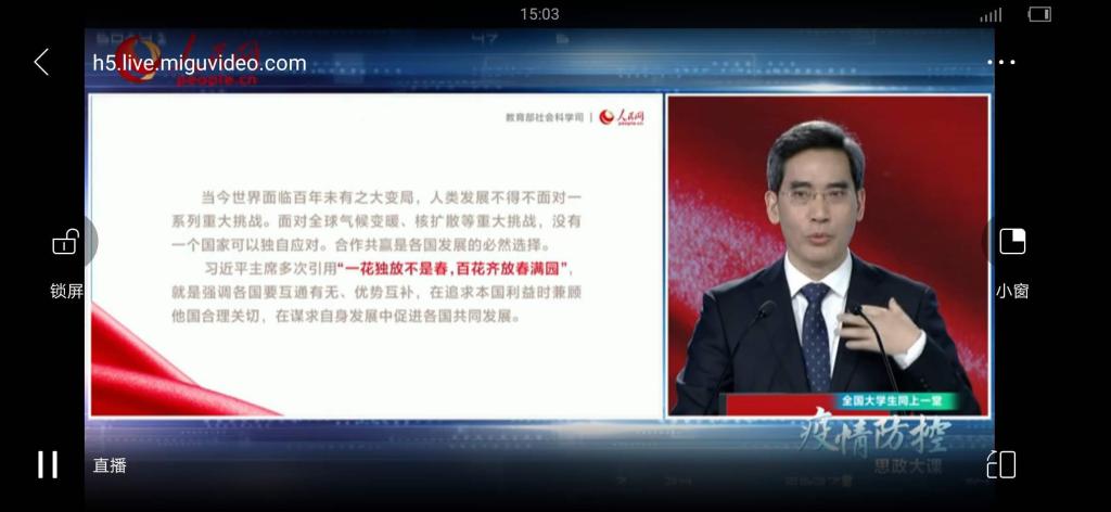 活动最后,全体人员共同收看了“全国老员工同上一堂疫情防控思政大课”。通过聆听艾四林、秦宣、王炳林、冯秀军四位教授的讲座,大家把握了党中央关于疫情防控的决策部署,认识到中国抗疫彰显的中国共产党领导和中国特色社会主义制度的显著优势,了解了防疫抗疫一线的感人故事。大家一致认为这堂思政课是“主流价值观”再深入、再深刻、再深情的宣传和教育,纷纷表示要把社会主义核心价值观内化于心外化于行,就像这次抗“疫”英雄们一样,守初心、担使命,群策群力,相守相望。