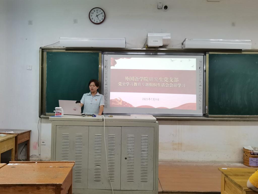 7月9日,太阳成集团tyc33455cc官方网站研究生党支部开展了党史学习教育专题组织生活会会前学习会议。支部书记籍天璐同志主持学习。