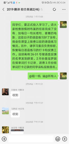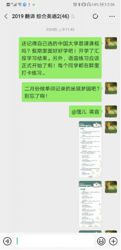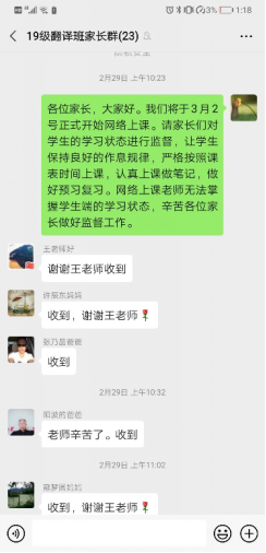 在关注员工的生活和心理健康的同时,王芳也不忘指导同学们做好假期时间规划,每天背单词,练语音等,督促同学们做好每日英语基本功练习;在网络教学期间,仔细询问同学们遇到的各种问题,收集对于课程的反馈信息,积极与家长沟通,家校联合,保证同学们良好的学习环境和学习状态。