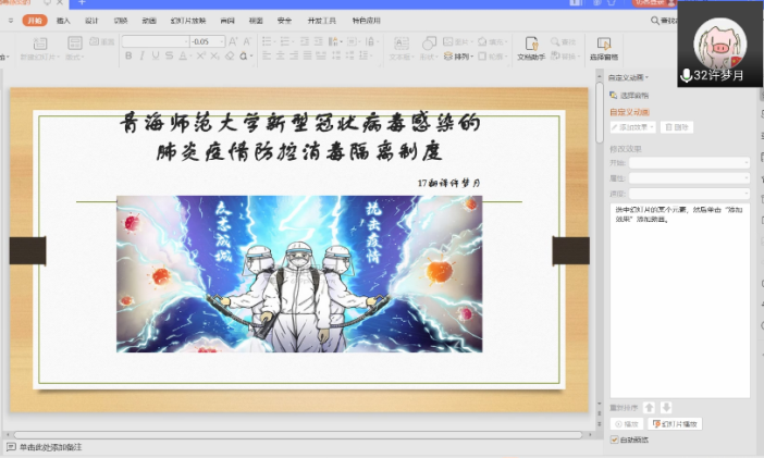 2016级翻译班班主任吉先才让,在疫情期间多次通过视频会议召开主题班会,并将疫情防控思政教育有效融入到课堂教学的始终。