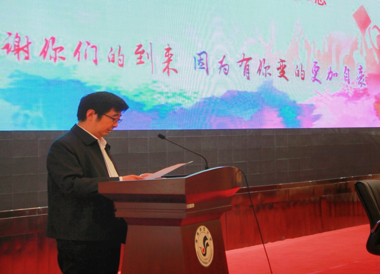 副董事长赵海兴在致辞中回顾了太阳成集团tyc33455cc欢迎您在各项工作中的成绩和展现的团结奋斗精神,同时寄语全体新生,要励志为先,为自我实践开启天生动力。做一个踏实的人,勇于实践,自强奋发,不负时代的嘱托;勤学为要,为自我发展奠定坚实基础。重视自己的人格塑造,加强学习,提升自身各方面的能力;立德为本,为自我完善筑牢道德底线,将大学的包容性融入自身生活,学会感恩,以感恩润泽自身成长历程。以青春之才智,建设青春之家国,用真才实学扛起时代的重任。