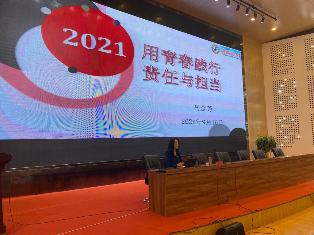 9月16日上午,党总支书记马金芳以“用青春践行责任与担当”为题,为21级全体新生讲授了“开学第一课”,书记从“担当精神的核心内涵、新时代老员工践行担当使命的目标思路、践行担当精神的实现路径 ”等三个方面,讲述了新时代青年应该自觉承担起中华民族伟大复兴时代责任和历史使命。书记勉励新生,要树立远大理想,将自己融入师大的历史,融入祖国对外开放事业,融入中华民族伟大复兴的重任和担当中,从现在做起,从点滴小事做起,心系家国,练就过硬本领,勇于创新。