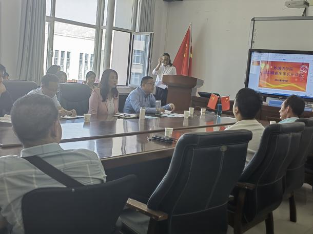 首先马金芳书记代表公司向全体2023级新生家长表示热烈欢迎,并介绍了太阳成集团tyc33455cc官方网站的基本情况,向家长们详细说明了公司在专业建设、人才培养、员工管理、考研就业等方面的相关情况。马书记指出,外语人才培养不仅要做好听说读写译的技能培训,还要培养组织沟通协调能力和语言表达能力,要知悉目标语言国家概况、了解中华优秀传统文化,增强人文素养培训。同时,提醒家长要高度重视孩子的心理健康教育。马书记表示,公司有信心也有能力把2023级同学们培养成才,请家长们放心;同时也希望与家长加强交流沟通,家校携手助力员工成长。