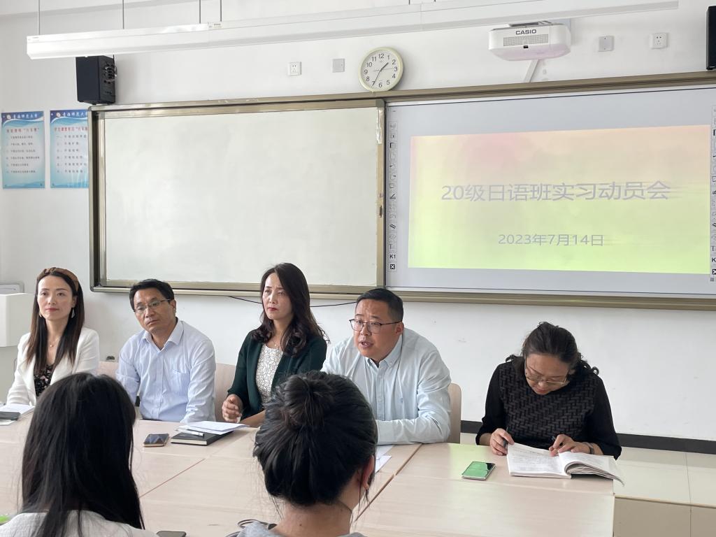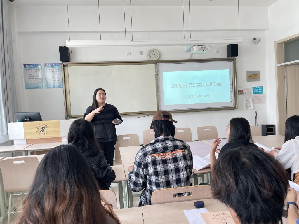 引导员工做好实习前的各项准备,推进实习工作的顺利开展,7月14日公司召开20级日语专业实习动员会。动员会由20级日语班班主任张媛老师主持,公司书记马金芳、经理李增垠、副经理妥洪岩、辅导员殷春兰老师和巩鲜妮老师,以及20级日语班全体员工参加了此次动员会。