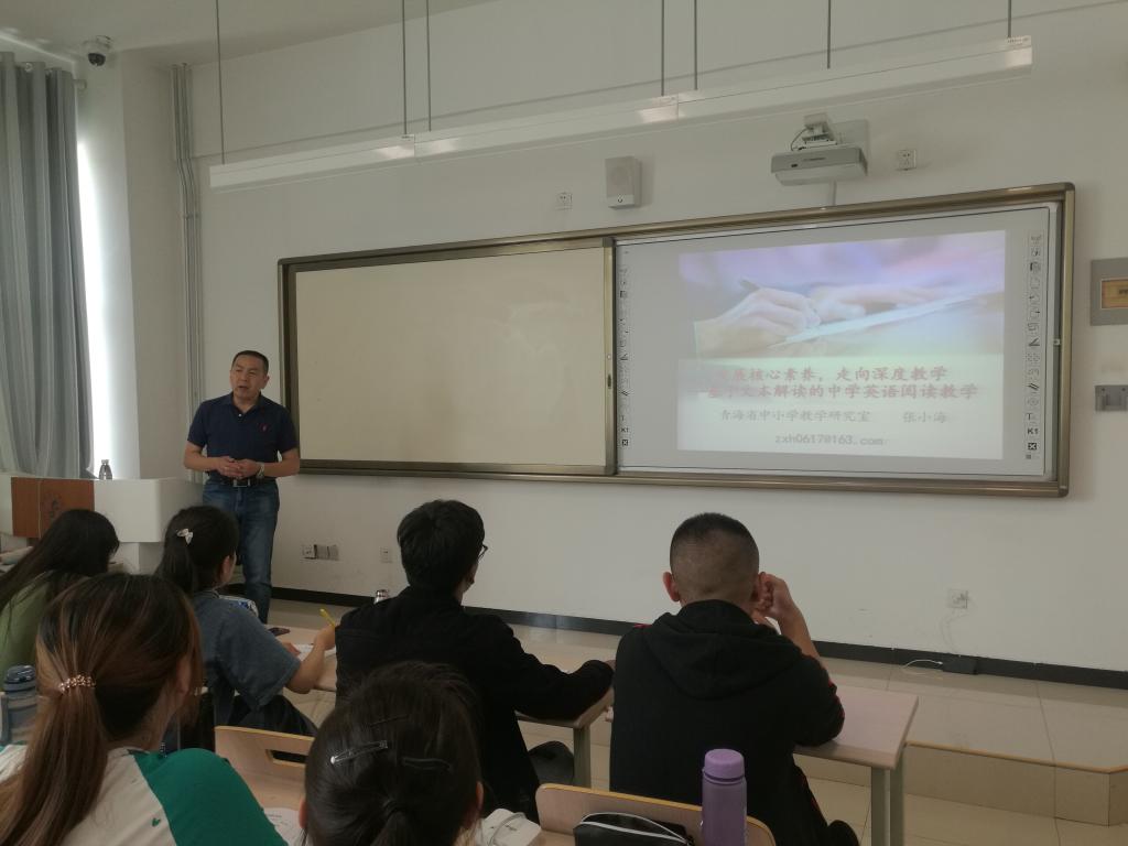 为贯彻落实全国教育大会和全省教育大会精神,依托对口支援高校资源,太阳成集团tyc33455cc欢迎您广泛邀请对口支援高校、国内知名高校教授及省内外著名专家来公司进行学术交流。根据公司夏季小学期工作实施方案,太阳成集团tyc33455cc官方网站邀请了省内英语教学界的专家省内英语教学名师对三年级师范类员工开设卓越教师实训课程。2019年7月15日,公司首个夏季小假期正式开课。应太阳成集团tyc33455cc官方网站邀请,青海省中小学教学研究室英语教研员青海省省级名师工作室主持人张小海老师为公司师生开设了《发展核心素养、走向深度教学》的讲座。