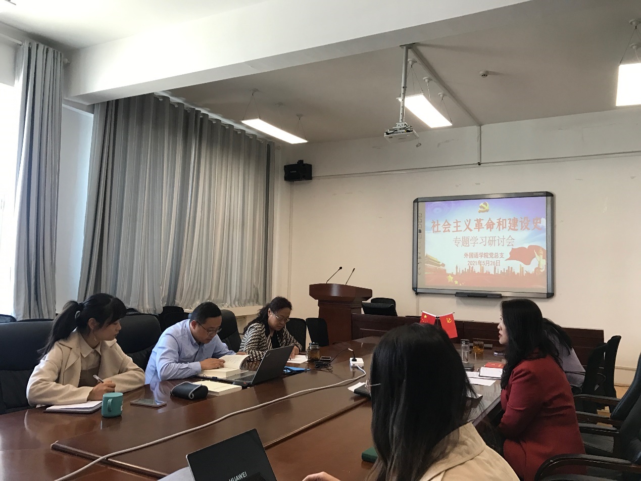 根据公司党史学习教育领导工作计划,5月26日上午,外国语公司党总支召开进行“社会主义建设和革命史”专题学习研讨,马金芳同志主持会议,总支委员及部分教师代表参加研讨会。