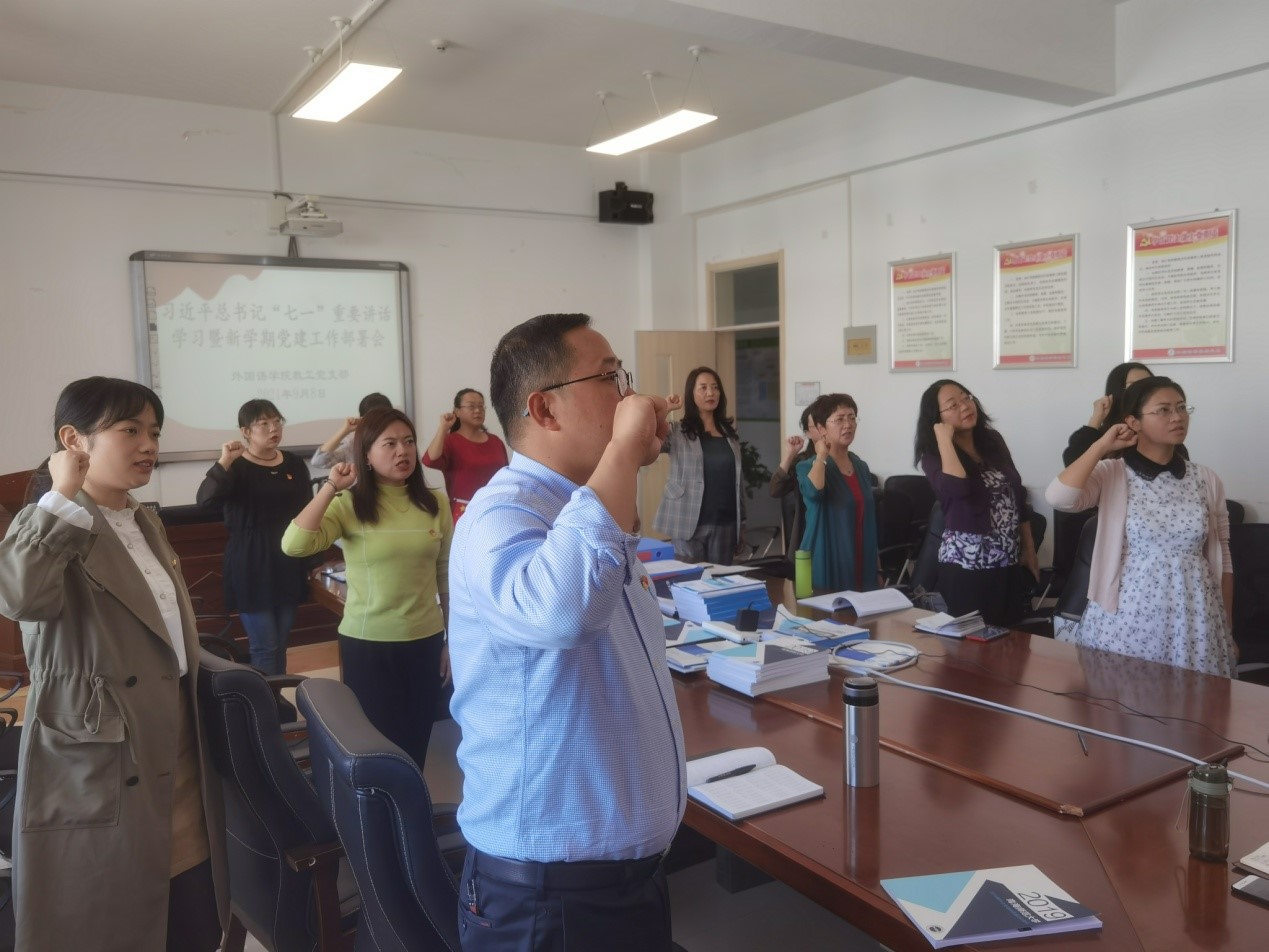 9月8日下午,太阳成集团tyc33455cc官方网站教师党支部在东二楼408会议室开展了以“学习习近平总书记‘七一’重要讲话精神,凝心聚力谋划公司党建工作新发展”为主题的党日活动,会议由教师支部书记妥洪岩主持,支部全体党员及预备党员参加。