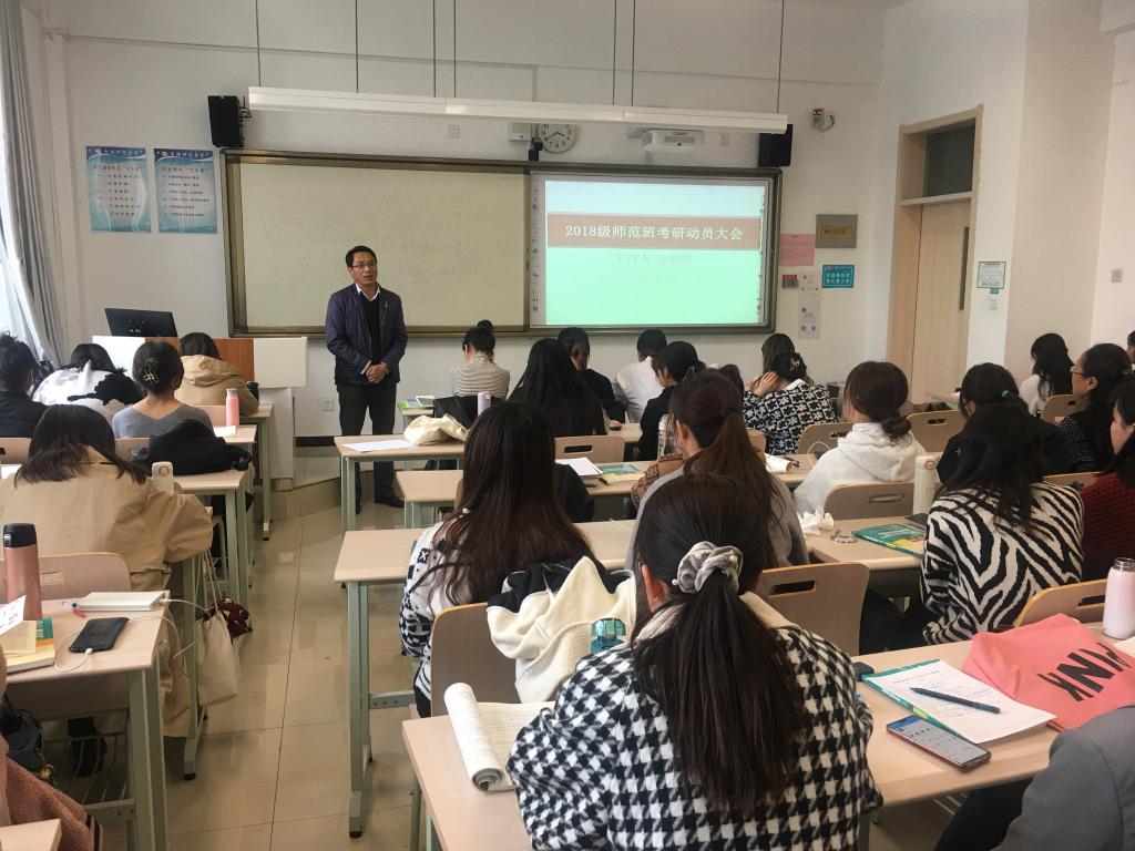 为更好地调动公司员工考研积极性,帮助员工确立考研目标,增强员工考研信心,坚定员工考研决心,提升员工考研非智力因素竞争力,10月14日下午,2018级师范班员工在东二楼418教室召开考研动员会。