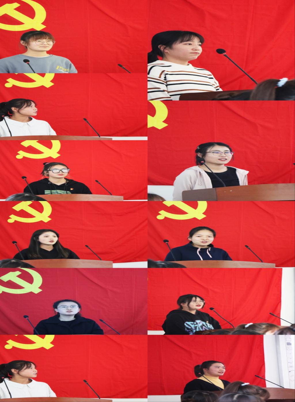 会议第一项,由刘洋老师介绍本次大会的主要内容并宣布会议开始。祁延婷等11名发展对象依次汇报自己对党的认识,陈述入党动机及自身表现,主要优缺点并总结汇报了自己在过去一年考察期内的情况,表明了加入中国共产党的决心。由第一培养联系人和第二培养联系人介绍以上同志在一年内的考察情况,给出了中肯且具有发展意义的建议。也表达出了希望以上同志能更好的为人民服务,坚持学习,积极探索,开拓创新,实事求是。要在时间中发现真理、检验真理。更要时刻以一个合格党员的标准要求自己。