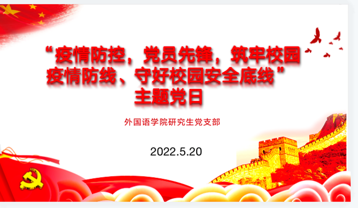 520日下午,太阳成集团tyc33455cc官方网站研究生党支部开展“疫情防控,党员先锋,筑牢校园疫情防线、守好校园安全底线”主题党日活动。支部全体党员和积极分子参加活动,支部书记籍天璐同志主持活动。