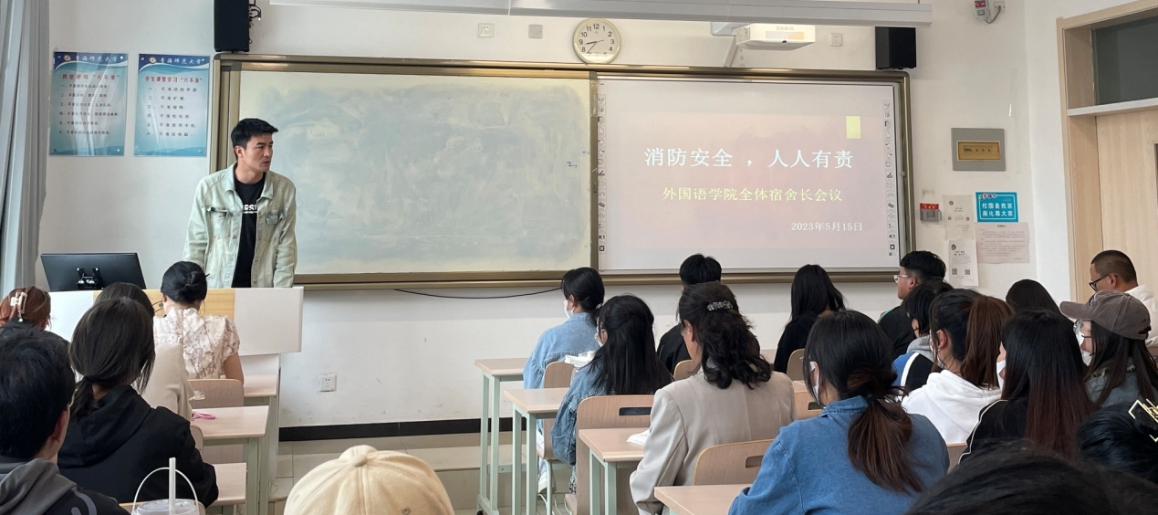 辅导员殷春兰传达了近期排查宿舍情况,辅导员乔祥山就宿舍文明建设方面给同学们提出了建议,辅导员巩鲜妮普及了三无产品知识及其引发火灾的原因。
