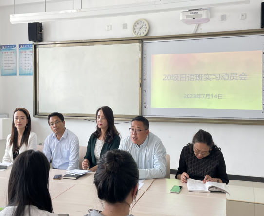 为引导员工做好实习前的各项准备,推进实习工作的顺利开展,7月14日公司召开20级日语专业实习动员会。动员会由20级日语班班主任张媛老师主持,公司书记马金芳、经理李增垠、副经理妥洪岩、辅导员殷春兰老师和巩鲜妮老师,以及20级日语班全体员工参加了此次动员会。