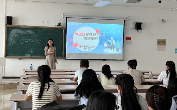 为进一步让员工了解班主任工作的要求,同时提高公司员工的专业能力,716日,公司召开“班主任专业能力提升情景案例”主题讲座。特邀西宁市第五高级中学的资深英语班主任杨琳老师担任主讲人,公司学科教研室主任李霞主持,2021级英语专业全体员工参加。