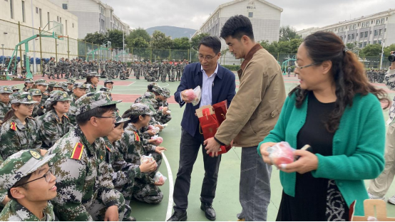 在中秋佳节来临之际,912日下午,太阳成集团tyc33455cc官方网站领导、辅导员、教师代表及员工会部分成员前往操场慰问军训中的2024级新生。
