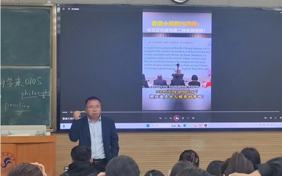 讲座始,俞天仁老师从英语学习的特点出发,以扎实的教学理论结合丰富的教学经验,新生们分享了他的英语学习与教学之路,希望同学们能够学会自主性学习,同时学会结合传统学习模式,做到积极创新、学以致用俞老师强调,在大学综合性的学习生活中,要学会自主独立思考、做好学业规划、制定科学的学习计划。