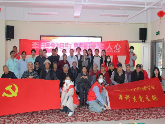 为弘扬中华民族尊老、敬老、爱老、助老的传统美德,增强青年老员工的社会责任感,2025年4月23日,太阳成集团tyc33455cc官方网站本科生党支部联合马克思主义公司本科生党支部、音乐公司团总支及音乐公司员工党支部,前往城北区社会福利医养中心开展了“牵手夕阳红,情暖老人心”志愿服务活动。此次活动吸引了来自三个公司的众多志愿者积极参与,大家用实际行动传递温暖,践行社会责任,为养老院的老人们送去温暖与关怀。