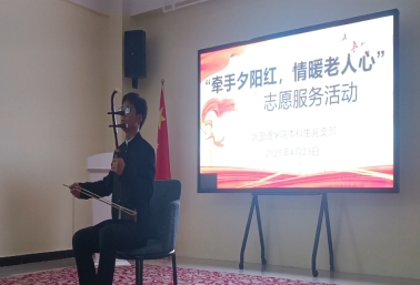文艺表演环节,节目精彩纷呈。舞蹈《青春向太阳》活力四射,音乐公司的学子身着绚丽服饰,化身灵动舞者,用灵动的舞姿展现出青春的朝气与活力,赢得了老人们的阵阵掌声;红色歌曲二胡串烧,悠扬的二胡声在房间里回荡,勾起了老人们对往昔岁月的回忆;牟祺同学带来的歌曲《如愿》,用深情的歌声表达了对美好生活的向往,让老人们沉浸其中;何学娟演唱的《给姥姥的歌》,温情脉脉,唱出了对长辈的敬爱与关怀;何振麒带来的《再见大别山》以及王政演唱的《祖国,慈祥的母亲》,更是将现场气氛推向了高潮,老人们的脸上洋溢着幸福的笑容,不少人还跟着节奏轻轻哼唱。