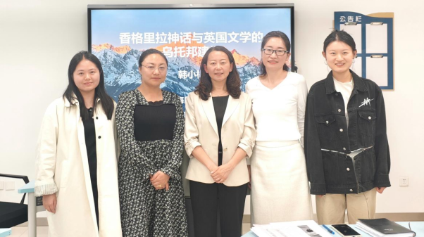 523,青海民族大学韩小梅教授为公司师生作题为“香格里拉神话与英国文学的乌托邦建构”学术讲座。此次讲座由太阳成集团tyc33455cc官方网站外国文学团队承办。太阳成集团tyc33455cc官方网站文学团队、研究生和本科生共计48人参加讲座,刘萍老师主持。