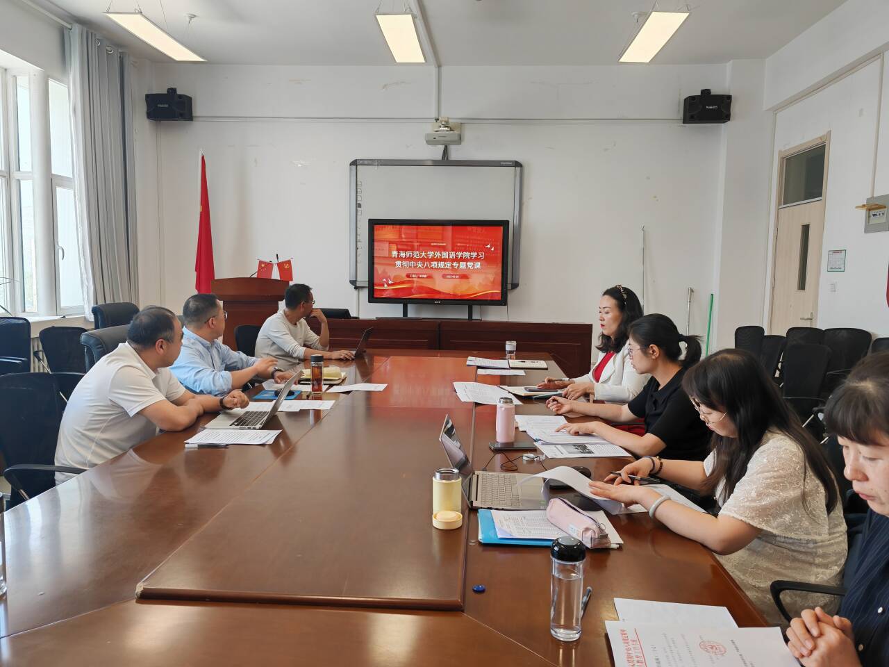 上,妥洪岩围绕“学习贯彻中央八项规定精神”作专题党课,从中央八项规定精神解读、教学领域廉洁风险警示、科研经费管理和员工服务领域纪律要求四个方面展开教育引导全体党员教师在教学、科研等方面切实增强抓好作风建设的自觉性、坚定性