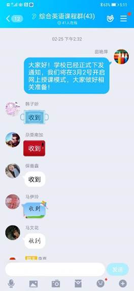 面对巨大的压力,我首先考虑课程特点,在线上进行了雨课堂、云班课、腾讯会议、QQ群课堂等多个平台的线上培训,并比较其功能、分析利弊、反复尝试、充分演练,最终确定使用雨课堂+腾讯会议+QQ家校群为主要的授课模式。与此同时,通过中国大学慕课网、网易精品课等多个网站和平台下载和整理了相关教学资源,为新学期开学做了充分准备。