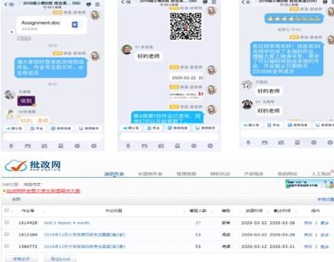 授课平台:腾讯会议+批改网+qq群