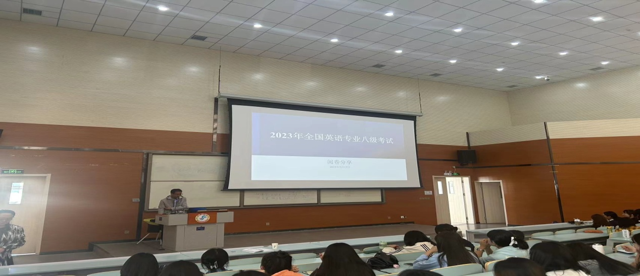 裴正华老师今年前往上海外国语大学参加了英语专业八级考试阅卷工作。裴老师依据该次阅卷经验以及学习心得,对英语专八考试进行了详细而全面的剖析,尤其是阅读简答题和翻译题答题技巧给予指导,并给同学们提出了几点学习建议。两位老师的分享受到了在场员工热烈的欢迎。