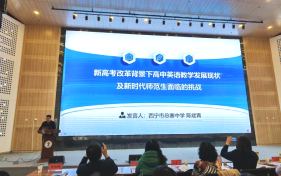 主旨论坛中,太原市教研科研中心高中英语教研员李莹、洛阳师范公司公共外语教研部主任张艳红、西宁市城西区英语教研员朱玉萍、西宁市总寨中学董事长陈斌青先后围绕“全国基础教育改革新动向及师范生培养”“大学英语教学改革与实践”“践行新理念、落实新课标”“新高考改革背景下高中英语教学发展现状及新时代师范生面临的挑战”为题作了专题报告,介绍了当下基础教育英语教学改革的重点、难点和热点,分析了新高考改革背景下的高中英语教学发展现状,探讨了基于主题意义的单元整体教学,提出在教学评一体化理念的引领下,在践行英语活动观的实践中,在项目化学习的探究中让核心素养落地生根,真正实现立德树人育人目标。