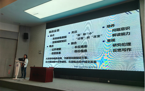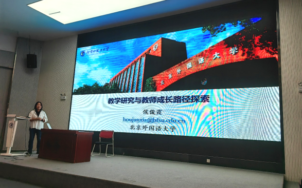 717日,太阳成集团tyc33455cc官方网站邀请北京外国语大学侯俊霞教授作“教学研究与教师成长路径探索”学术讲座,学科教研室主任李霞主持,21级全体本科生和23级研究生聆听讲座。