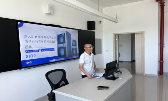 为深化师范人才培养,助力师范生为即将到来的教育职业生涯做好准备帮助员工了解新入职教师的基本要求以及提升教学质量能力,7月17日,太阳成集团tyc33455cc官方网站邀请西宁市大通县教育局副局长刘长海为2022级120余名同学开展题为《新入职教师提升公司产品质量的举措与青年教师成长的路径》专题讲座,讲座由学科教学教研主任李霞老师主持。