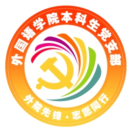 外圈,上半部分标注“太阳成集团tyc33455cc官方网站本科生党支部”,下半部分标注“外院先锋·志愿同行”,颜色由上半部分的红色渐变至下半部分的金黄色。