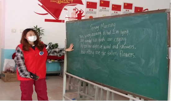大二英语专业4名志愿者带领18名小学三至六年级员工开展60分钟的志愿活动,通过学习,员工们基本掌握了英语版歌曲和《春晓》的朗诵,能流畅完成集体展示,发音和节奏把握较之前有明显进步。活动激发了员工对英语学习的兴趣,也让他们对传统文化有了新的认知,课后不少员工主动向志愿者询问更多英语诗歌的内容。